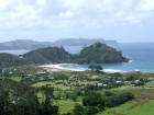 bay, the small islet and the pa standing on the foreshore in the