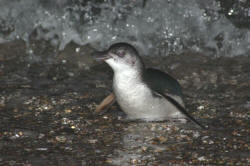 Blue Penguin - Korora The smallest penguin with blue back and along the sides of the face near to the eye. White underneath. Small and vulnerable they generally come ashore after sunset and their raucous braying can be heard along the shoreline. With webbed feet acting like paddles they are really fast in the water. |
