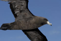 Cooks Petrel Have a white forehead, cheeks and underparts while their back is pale grey. Their bill is long and black, legs and feet blue. They breed from October through to May and then migrate to the eastern Pacific from California to Chile. |